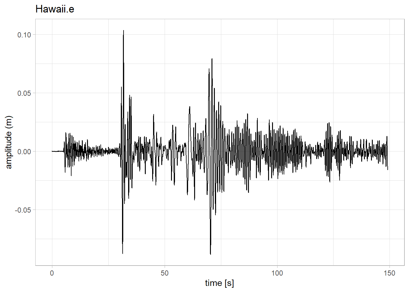 labs(x = 'time [s]', y = 'amplitude (m)', title = 'Hawaii.e') +